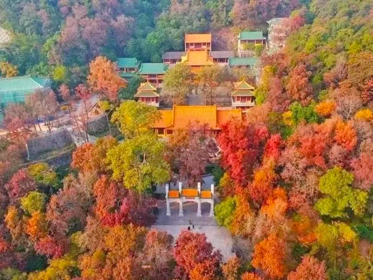 240亩的枫树,映衬这座始千年古刹