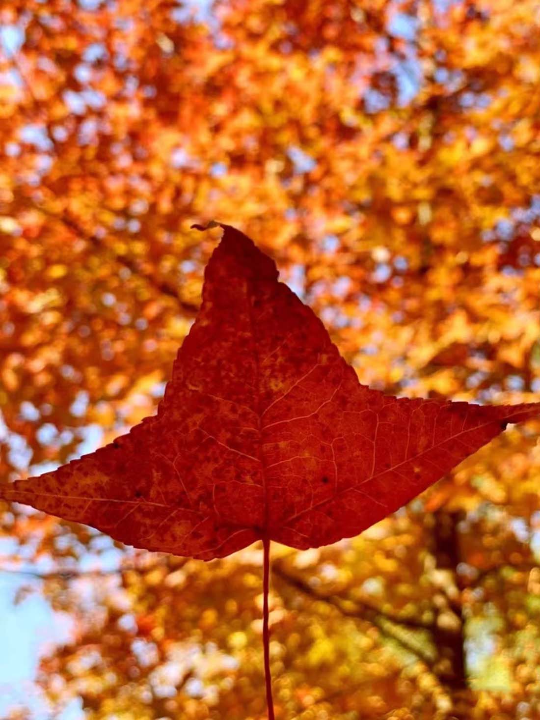 顺着登山古道,火红的枫叶让人沉醉不已