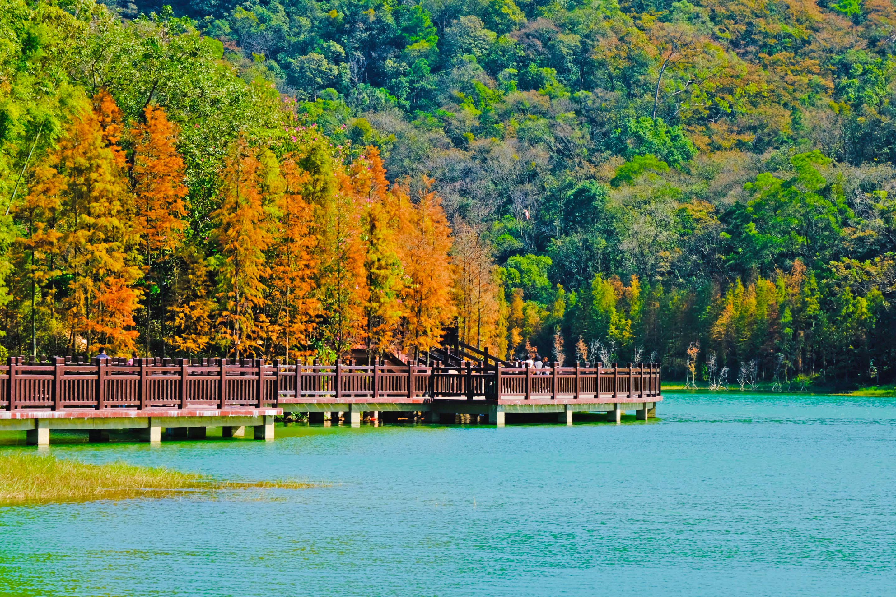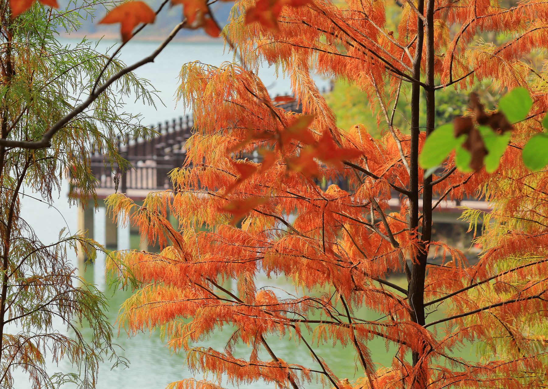 赏新会“小九寨”的多彩冬日,落羽杉亦金亦红,交相辉映,让人流连忘返