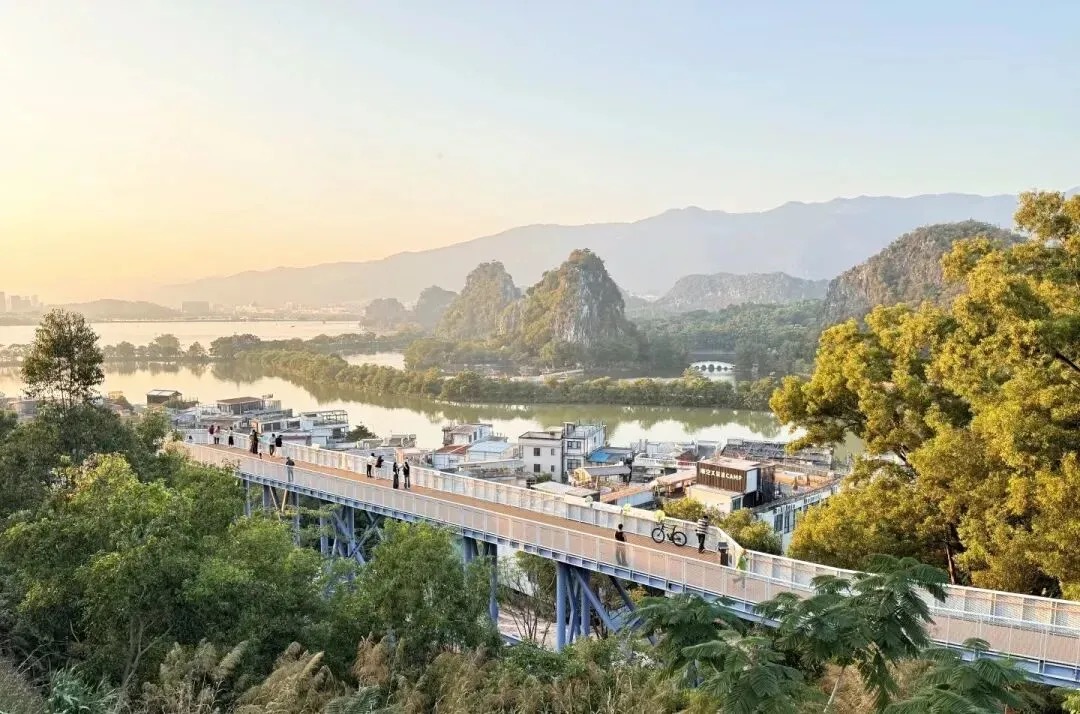 13:30 到达“肇庆岩前村”,这里被誉为“广东鼓浪屿”,位于星湖绿道,一个面山靠水的村庄,特别有文艺气息;且元旦建好开放的“象岗云道”,让这里的风景更加惊艳,随手一拍的大片,触手可得;