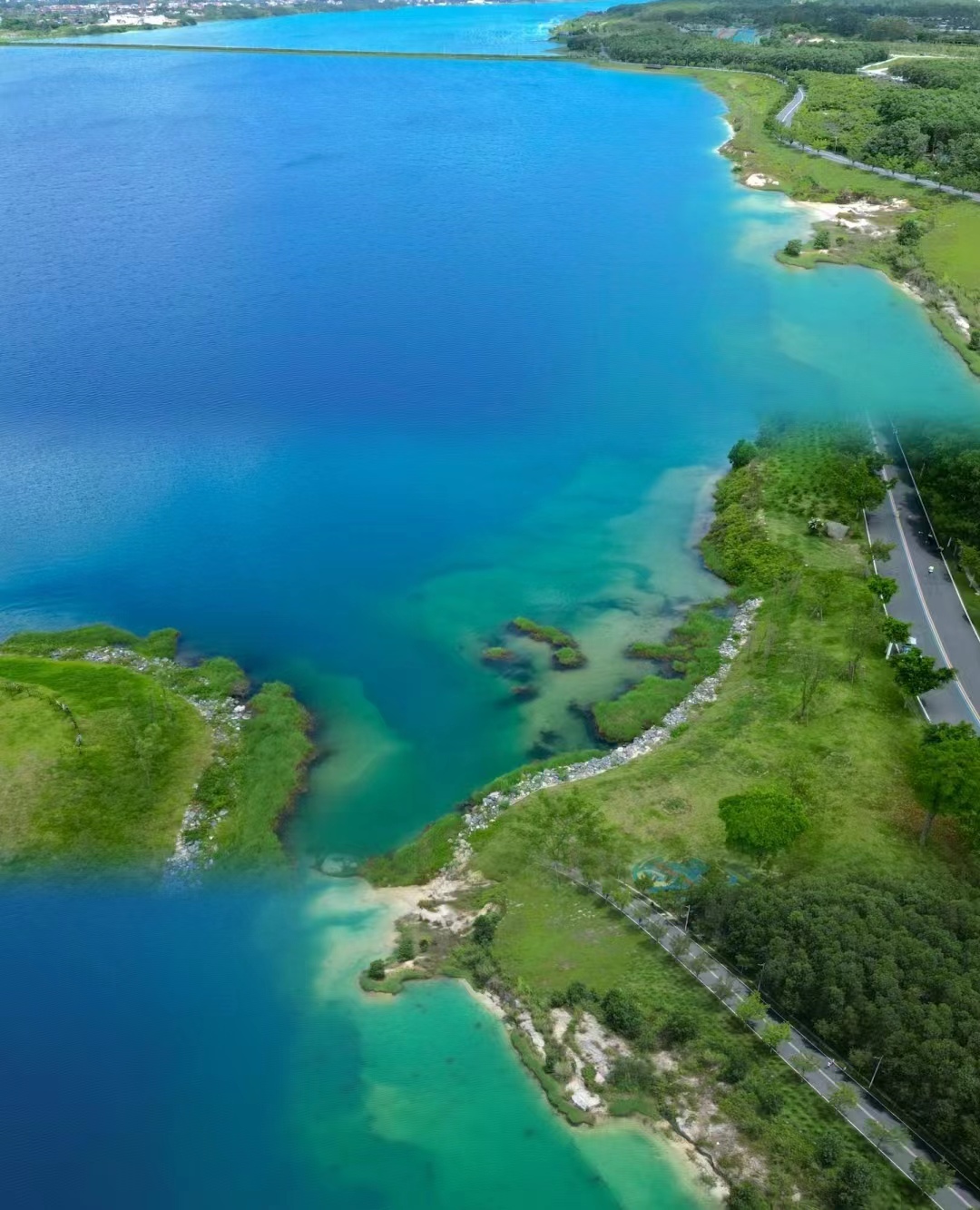 其实在广东,也有一个迷人的地方,茂名露天矿,湖水碧绿