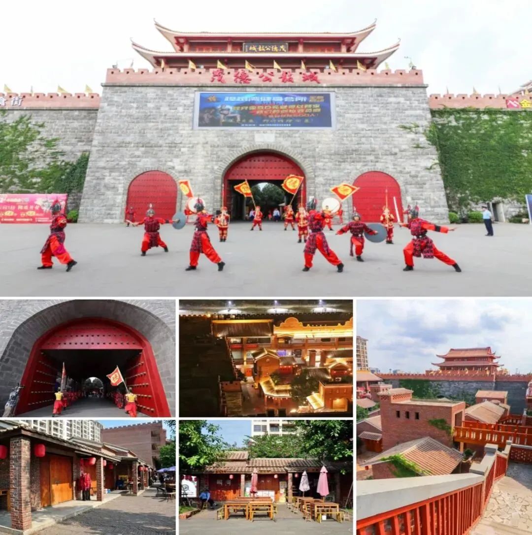 12:00 左右到达【茂德公鼓城】,这里有许多小吃,餐厅供选择。青石红砖红瓦典型的雷派建筑风格,恢宏的城墙内,城楼交错,建筑形态古色古韵又透出现代气息,具有雷州半岛别样风情,走进雷州茂德公古城,仿佛穿越时空隧道, 回到一千多年前的古雷州。走在古城的大街小巷上,踏着一千多年的历史,仿佛看到雷州古城的繁荣 和喧闹;