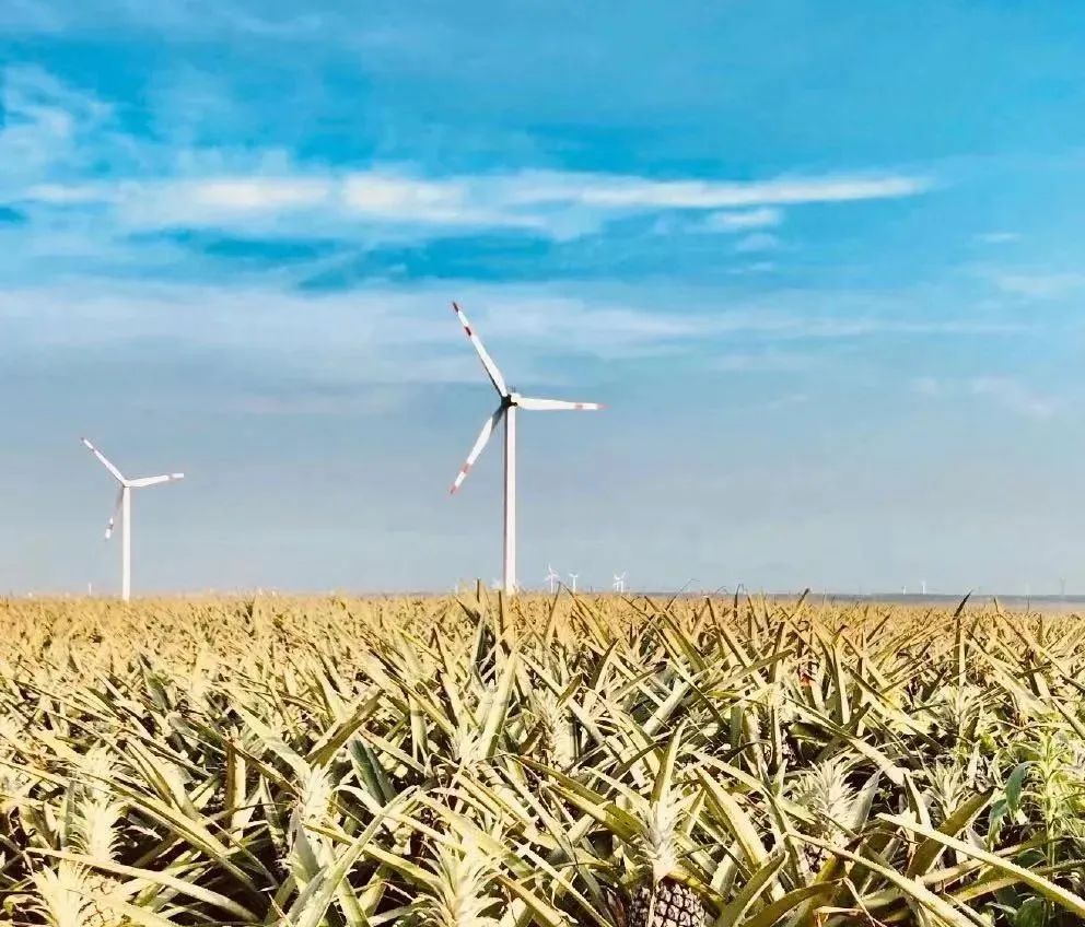 10:00 中国独有的著名田园景观【菠萝的海】远望去成片菠萝的海连绵起伏,一眼望不到边,一个个金黄色菠萝立在株苗上,就像绿色海洋上的金鳞鱼随风涌动,还不时飘来阵阵的香甜味。白色的风车耸立其中,这里被誉为中国的“普罗旺斯”、“北海道的花田”。在这还可以观赏到悠悠转动的风车群,再加上多彩的菠萝园让你体会到童话般的景致。而徐闻的地里位置恰好适合【风力发电】,田野的空旷场地也正适合风力发电车建设;也因如此,风车正好点缀了大片田野,令人彷佛有著置身在欧陆乡间的错觉。