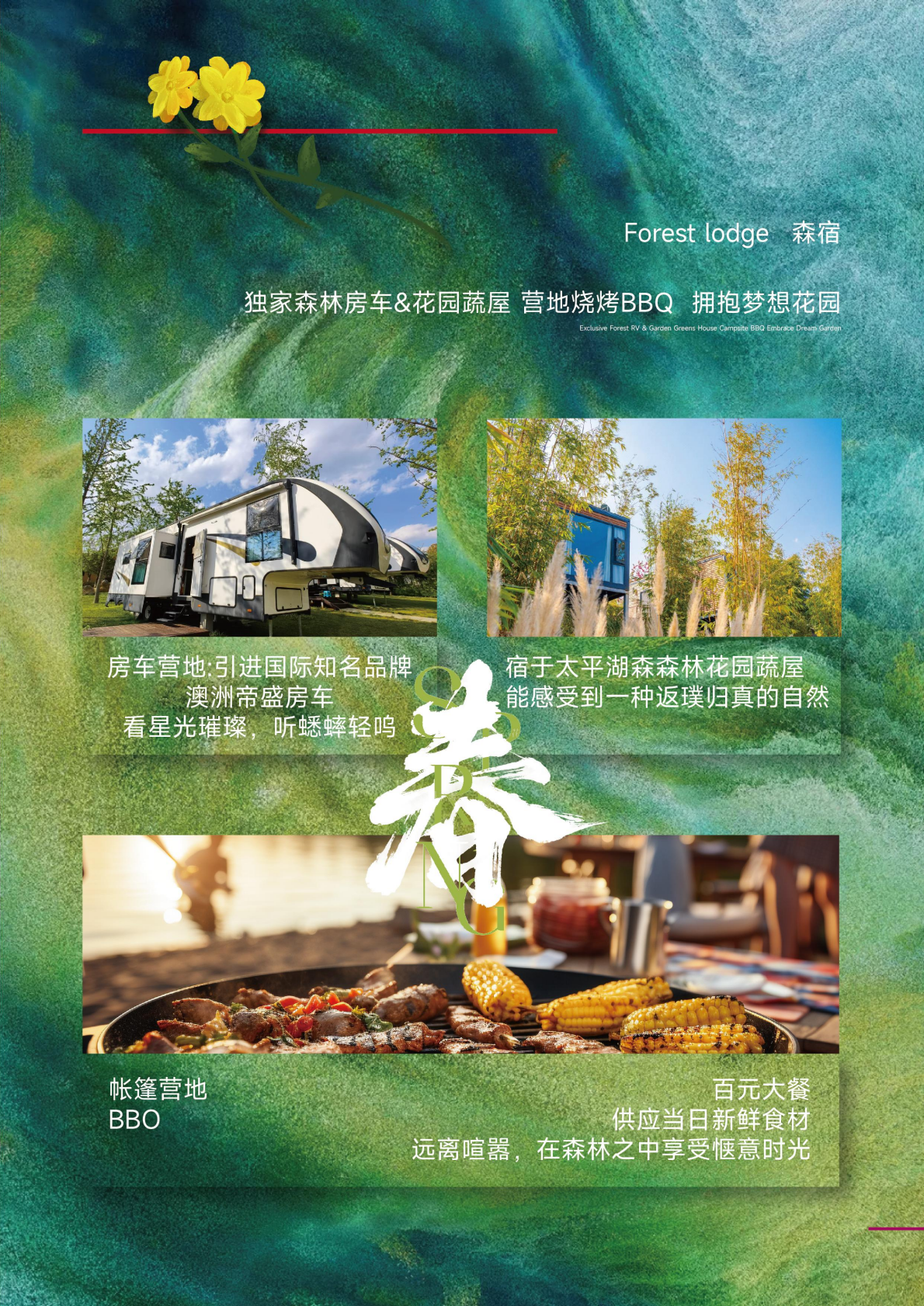 今日下榻太平湖森林公园内房车/蔬果屋,携手家人、伴侣良友与山水相伴,听松涛入眠,拥湖风入梦。晚餐特别安排户外野营BBQ,食材新鲜、丰富,环境清悠惬意,逛累了席地而坐,烧烤的香味萦绕草地上空,饱餐一顿,这一天必须充实而满足。