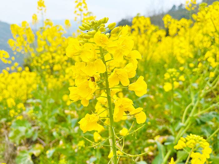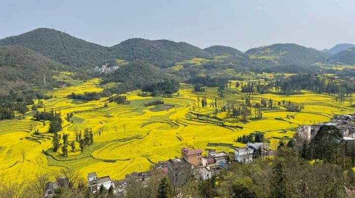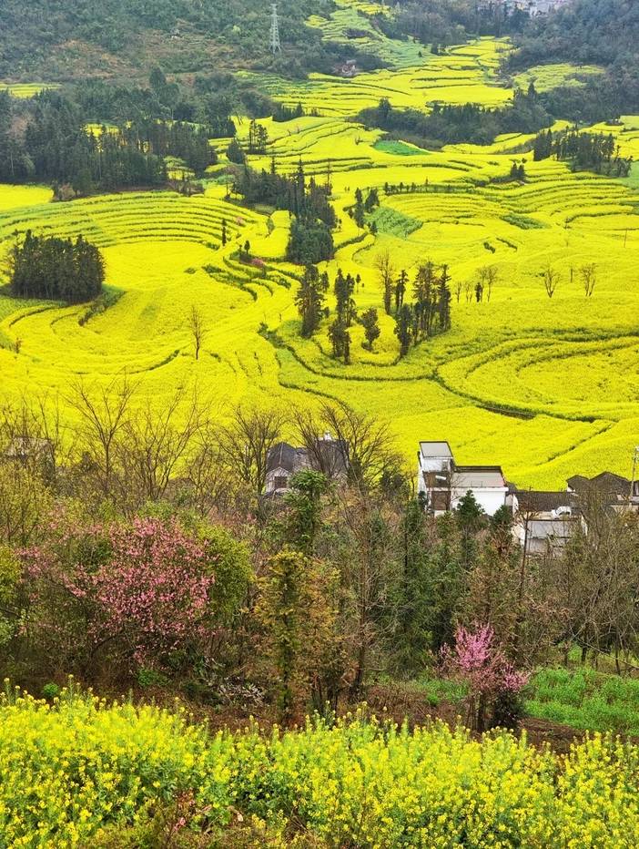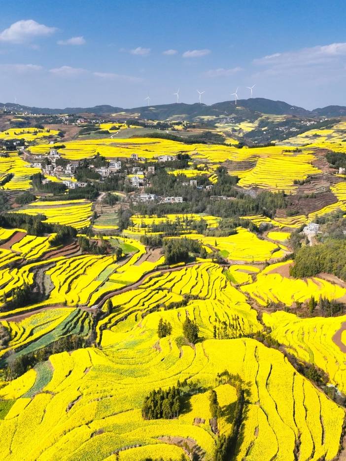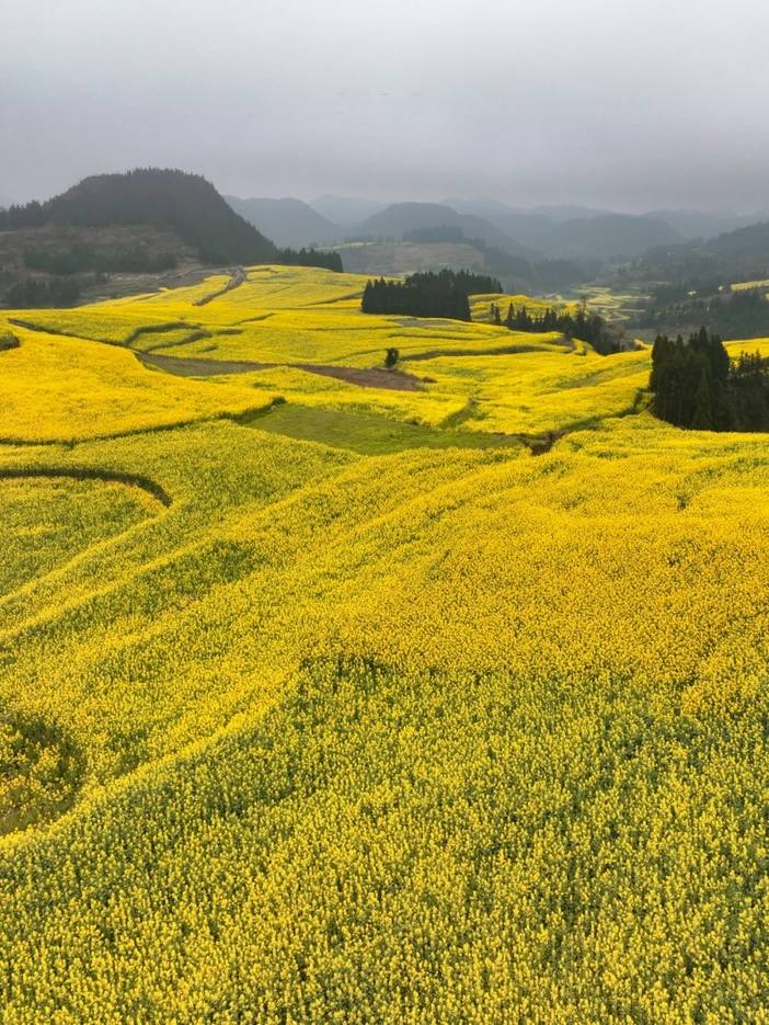 行走金色海洋的观景栈道,多条栈道可供行走拍摄 ,登上炸头山 ,从高处俯瞰花海的壮丽。金鸡峰丛是中国四大峰丛之一 ,许多锥状山头玲珑有致的散落在这一片土地上 ,高的百余公尺,低的十几公尺 ,像是雨后春笋一般。