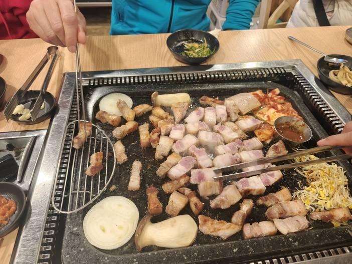 从中国飞抵韩国·济州岛机场,机场5号门口等待接机,到酒店办理入住。酒店要到15:00才可以办理入住,如果提早到的可以结伴现行游玩。可以去新城区的新罗/乐天免税店购买自己心仪的物品,也可以去海边网红打卡,或者去老城的东门市场各种吃吃吃。晚上可以约上同团的小伙伴吃上一顿正宗的黑猪肉烤肉。