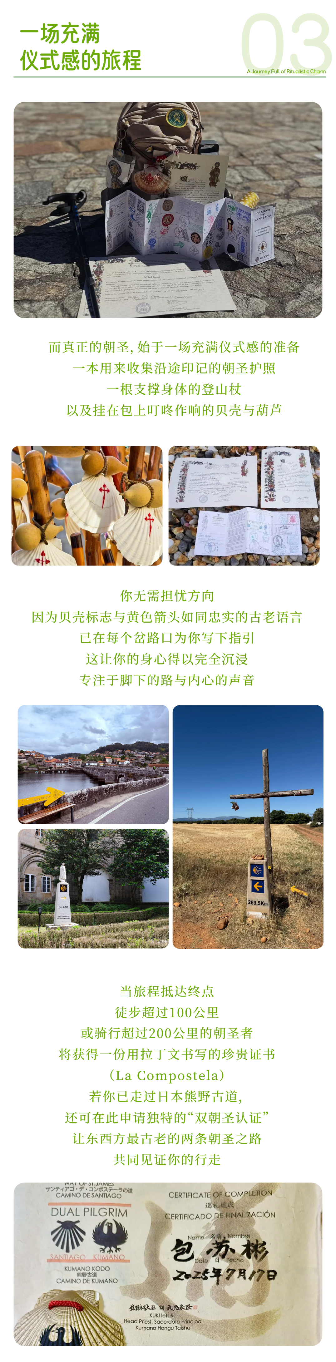 证书:1、朝圣者护照 2、朝圣者贝壳 3、朝圣者证书