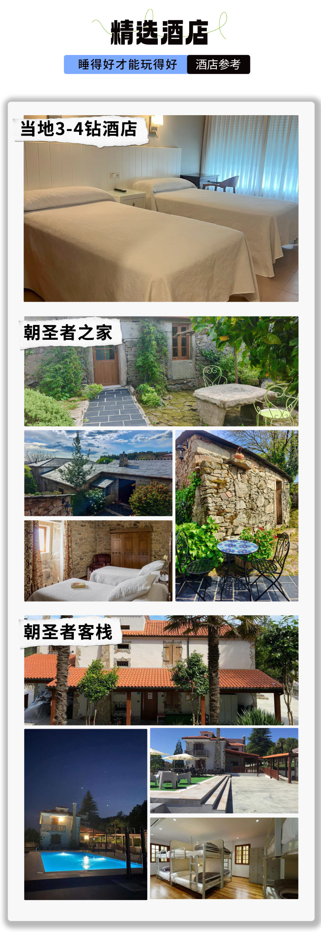 1、朝圣者之家等同于国内民宿,通常为古朴的欧式风格,环境与格调普遍超过同级酒店。