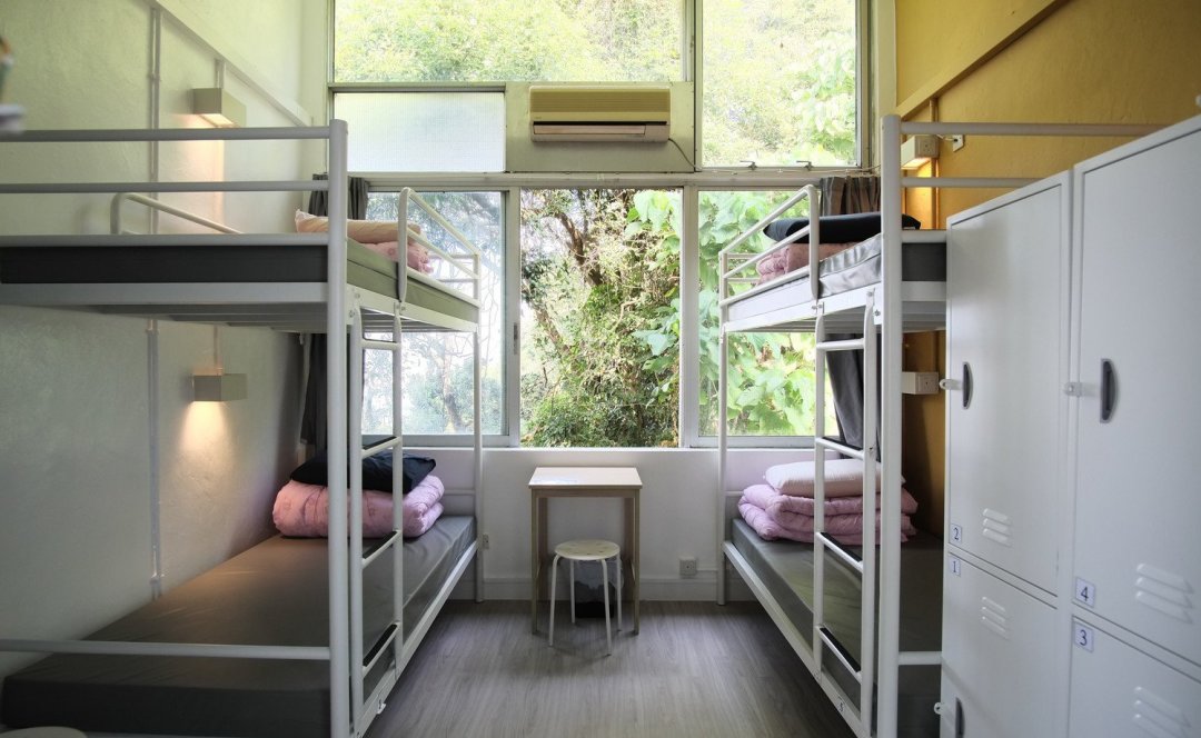 摩星岭青旅为4-6人间,男女分住,除非4人认识可以同住,(4人间居多,青旅有少量双床房,需每人加70元,可咨询客服),设施基本完善,空间比较合理,(使用公共浴室、厕所)。旅舍位于山顶,270度海景,香港本地周末聚会首选。