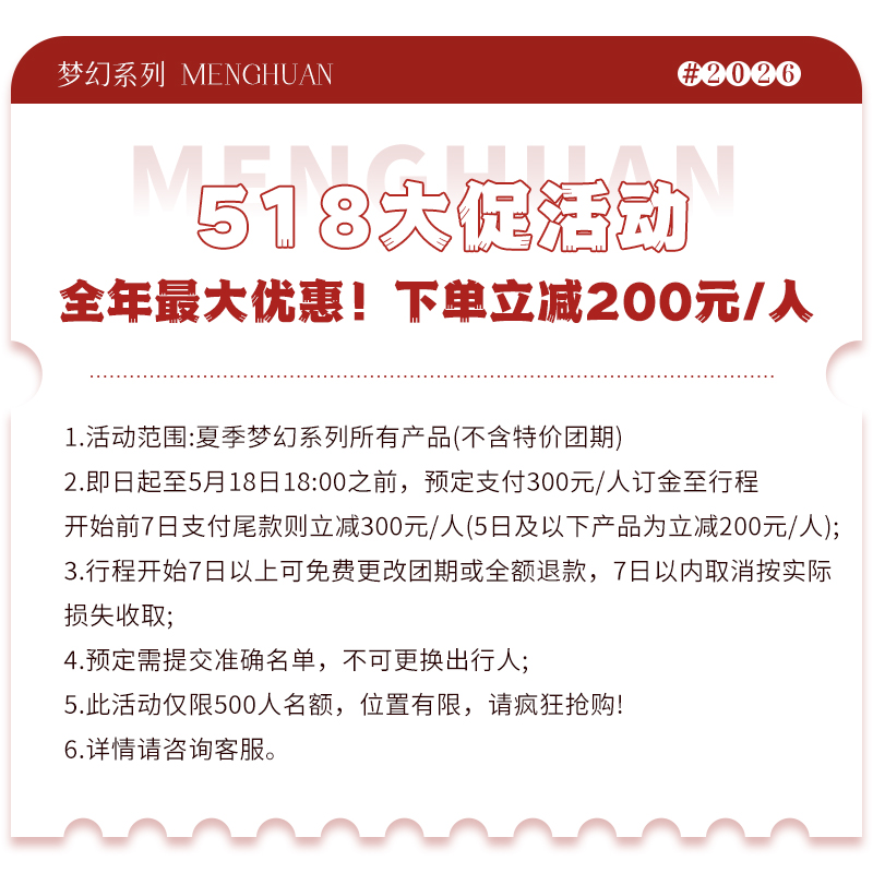 旺季团期:成人2999元/人,儿童1499元/人