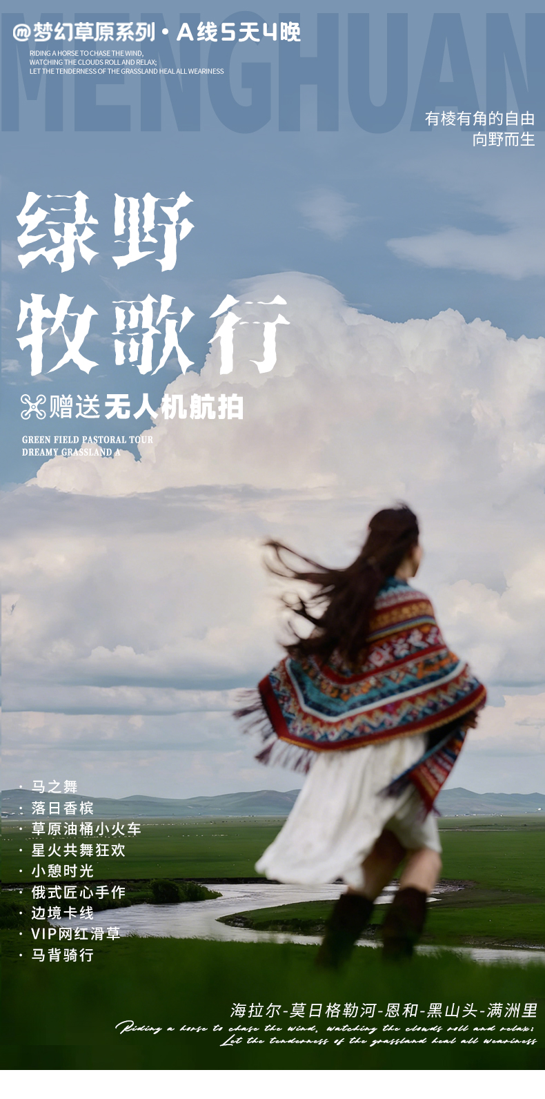 1、赠送牧民之家撒欢游玩体验(如因景区原因或下雨等恶劣天气取消不退费用)。