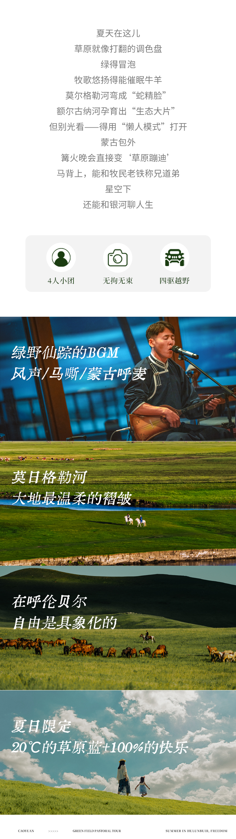 3、用车:全程SUV,4位客人一车(尽量安排同组一车,有特殊情况保留座位调配权利);