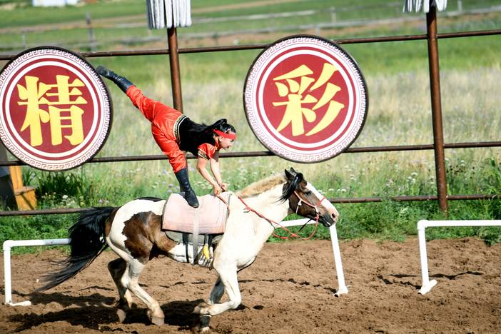 10:00 抵达巴尔虎,体验最具蒙古魅力的【马之舞】。因为蒙古民族是草原民族,马则是他们最亲密的朋友,又是长途跋涉的工具。草原为根、马者为魂,人马合一,以蒙古马术表演为主,有训练有素的专业蒙古马术团队年轻的男女携百骑马匹做马上表演。是综合性的马术表演,又是以天然的呼伦贝尔大草原为背景,在表演时,不时传来阵阵掌声和喝彩声,震撼、壮观、彰显了蒙古民族特色,让人赞不绝口。