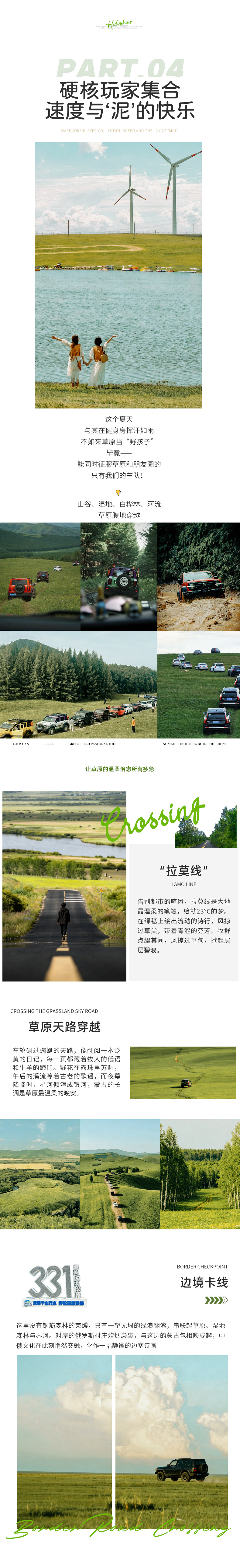 恩和-白桦林轻徒步-草原天路穿越(风之谷/笑脸河)-边境卡线(边境公路穿越/远观太极图)(48KM,车程约1小时)-黑山头(84KM,车程约2小时)-骑马2小时-草原日落-篝火晚会