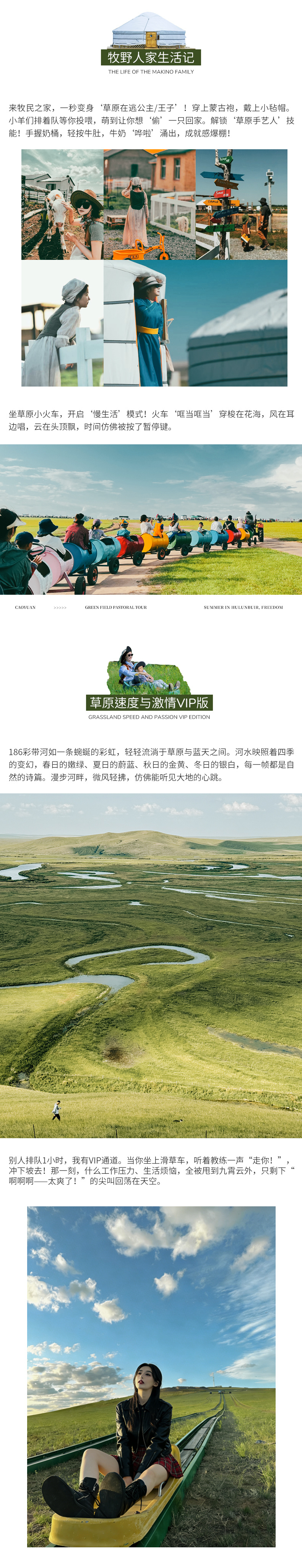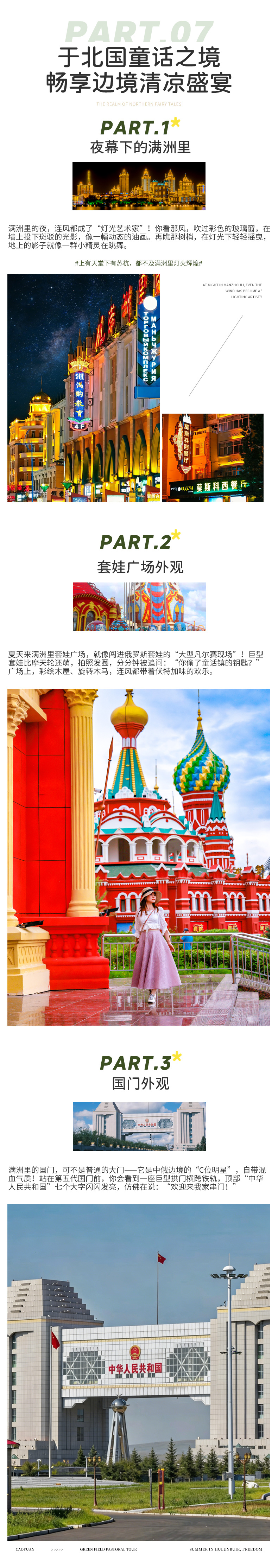黑山头-牧民之家(变装蒙古人/喂小羊/挤牛奶/草原小火车)-186彩带河(网红滑草VIP通道-射箭-高尔夫体验-仿真枪射击)(57KM,车程约1小时)-满洲里(190KM,车程约3小时)-套娃广场外观-国门外观