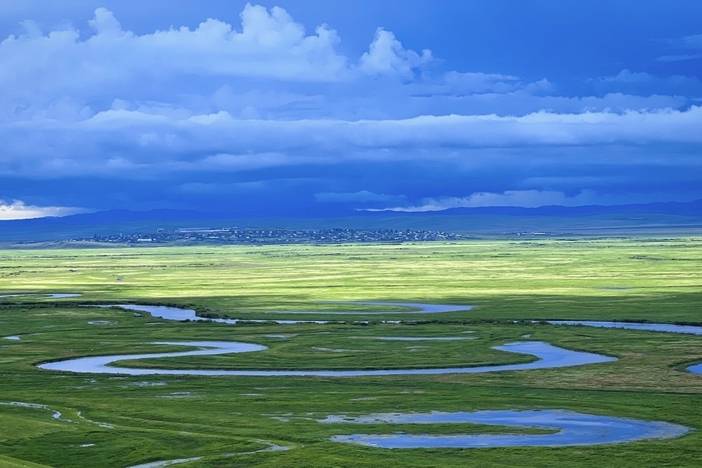 09:00 我们一路向北,沿途欣赏老舍笔下的天下第一曲水【莫日格勒河】,成群的牛羊点点绽放,点缀在青绿色的草原之中,仿佛一幅动人的悠然油画。品尝茶点时光。