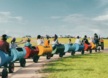 【草原小火车】大家骑坐在油桶做成的小火车之上,一边欣赏大自然的美丽风景,一边让家人拍下自己乘坐这一网红游乐项目的照片,记录下自己的美好瞬间。